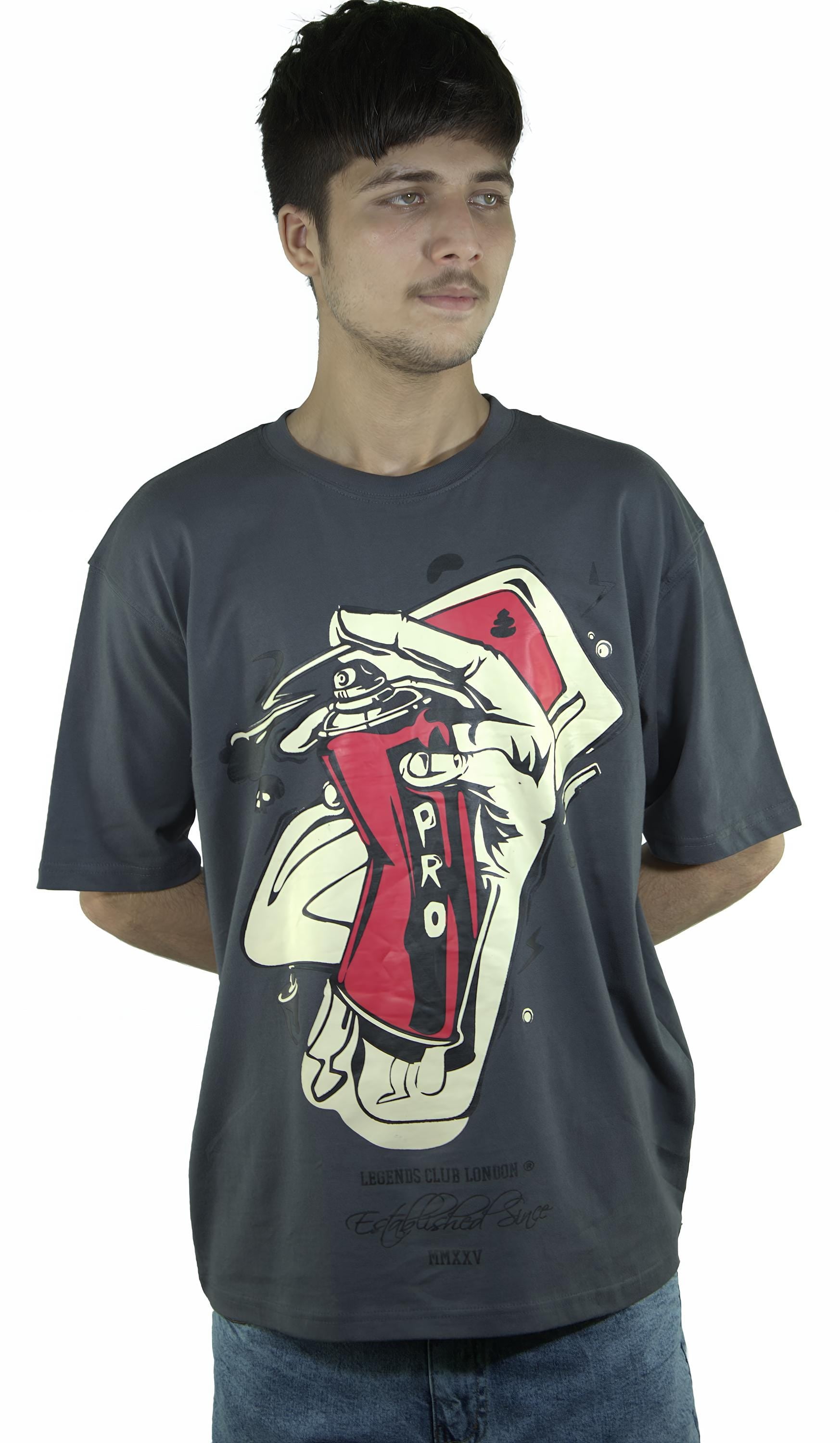 A visual homage to street culture, the Urban Spray Tee is crafted from luxurious heavyweight cotton with a relaxed drape. The deep charcoal base sets the stage for an oversized graffiti-inspired illustration — a hand in motion, gripping a bold red spray can. Anchored by subtle “Legends Club London” typography and signature script, the piece captures the intersection of art and rebellion.